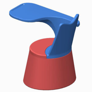 - Use of Plastics: The product design was to be molded in 100 percent polyethylene. Except for four metal screws for user assembly, no additional materials were used. This exclusive use of a single material for a one-piece (inseparable) residential school desk is intentional and unique. School desks are typically manufactured in multiple materials or offered as separate desk and chairs.